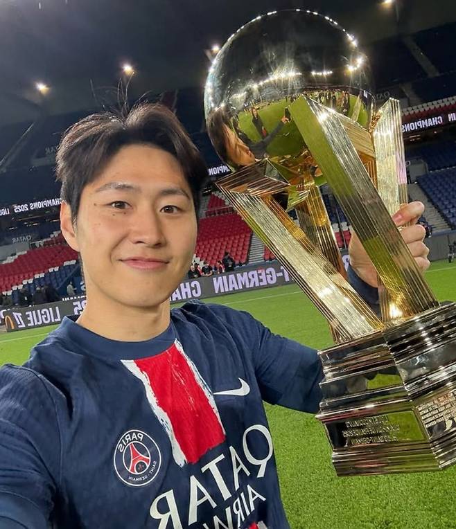 파리 생제르망 옥세르 시즌 리그1 마지막 경기 승리..이강인 결장 뒤에 우승 행사 참여해 활짝 웃었다