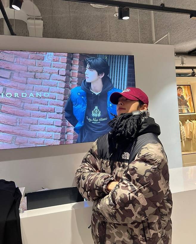 사진 속 차은우는 보라색 후드티와 블랙팬츠와 캡모자를 쓰고 내추럴한 코디와 두꺼운 구스 숏패딩과 목도리와 캡모자, 검은 롱 점퍼와 흰 모자, 네이비 바람막이와 검은 캡모자를 쓴 사진을 공개해 센스 있는 다양한 코디를 자랑했다.