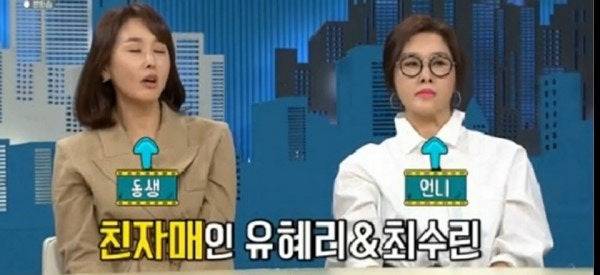 최수린의 언니도 배우 유혜리인데요. TV조선 '스타다큐 마이웨이'(이하 '마이웨이')에는 배우 유혜리, 최수린 자매가 출연했습니다. 유혜리는 막냇동생 최수린의 방문에 기분이 업된 모습을 보이며 "기저귀 갈아주며 키운 동생"이라고 소개했습니다.