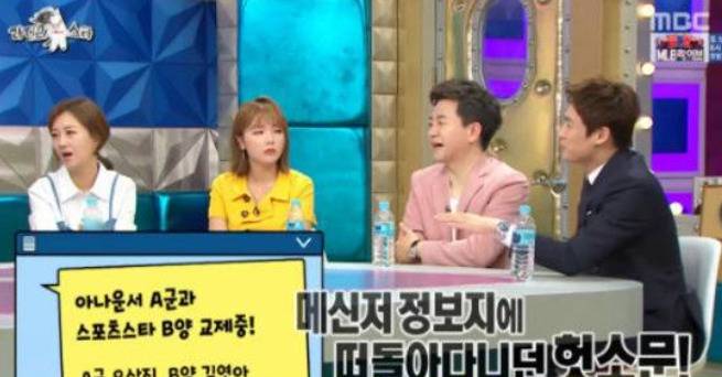 이에 “상대가 누구냐고 물어봤더니 피겨여왕 김연아라고 하더라. 김연아 씨와의 스캔들 루머 때문에 파파라치가 다섯팀이 붙었다”라고 비화를 털어놨다. 결국 파파라치에게 김소영과 함께 있는 사진이 찍혀 공개 열애를 하게 됐다고 말했다.