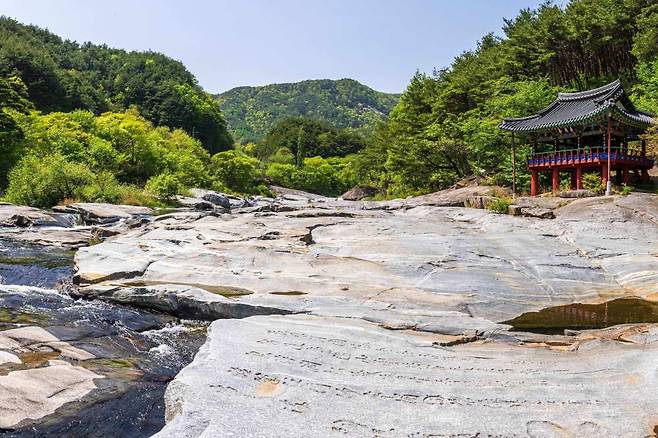 거연정에서 남강을 따라 동쪽으로 10분 정도 이동하면 화림동 계곡의 정점 농월정을 만날 수 있는데요. 시원한 계곡물과 너른 암반, 그리고 운치 있는 정자가 어우러져 절경을 보입니다.
