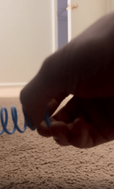 조용했던 방 안, ‘통!’ 하고 울리는 탄성 좋은 스프링 소리 하나. 이 짧고 경쾌한 소리에 누군가의 귀가 쫑긋 섭니다. 어디선가 빠르게 달려오는 소리와 함께 방문을 지나치는 그림자. 그리고 곧바로 등장한 건 회색빛 고양이 한 마리였습니다. 눈은 이미 반짝이며 주인의 손을 응시하고 있었죠.