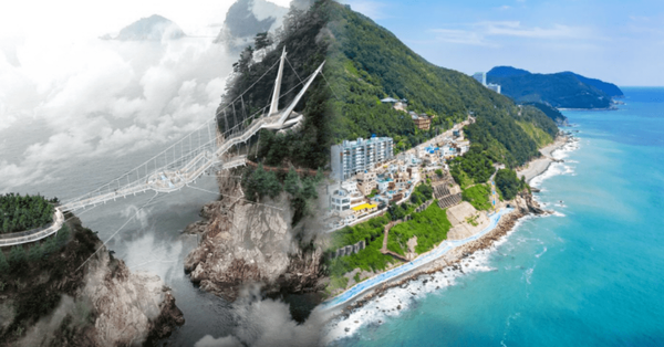 송도용궁구름다리는 바다와 하늘 사이를 걷는 듯한 느낌을 주는 부산의 인기 명소입니다. 바다 위를 걸으며 아름다운 바다 풍경과 기암절벽을 감상할 수 있어, 많은 사람들에게 사랑받고 있습니다.