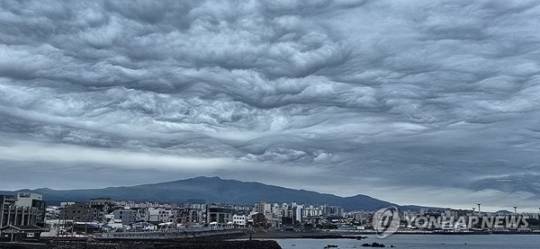 한라산 북쪽 제주시 하늘 위로 널따랗게 펼쳐진 이날 구름은 마치 물결치듯 울퉁불퉁하고 기묘한 생김새였다.