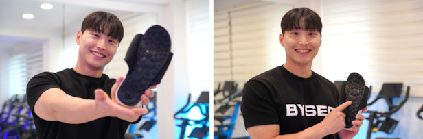 부담감 없는 디자인과 운동 효과, 두 마리 토끼를 잡는데 주안점을 뒀다 “시중에서 가장 많이 팔리는 슬리퍼 디자인과 색상 조합을 참고했습니다. 완전히 새로운 형태보다 익숙하면서도 세련된 디자인을 선택했습니다. 동시에 단순한 운동 기능을 구현하기 위해 라운드형 구조를 채택했습니다. 마사이족의 걸음에서 착안한 것으로, 가자미근과 전경골근을 자극합니다.”