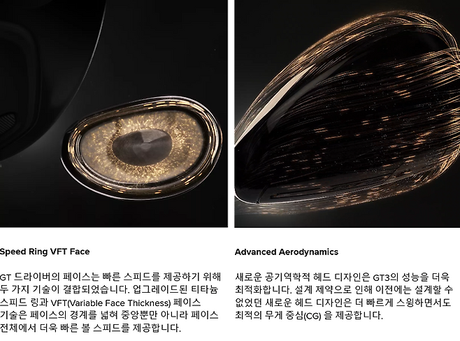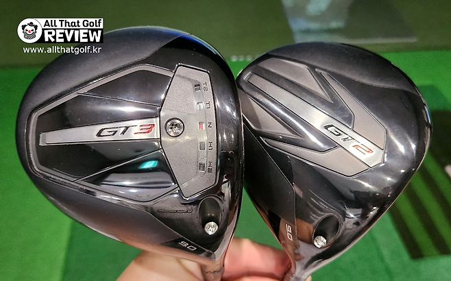 좌측의 GT2는 약간의 샬로우 페이스로 위에서 내려다보면 뒤쪽 헤드가 약간 불록 나오는 것처럼 보입니다. GT3 헤드는 같은 사이즈이지만 약간 딥페이스로 약간 더 콤팩트해 보입니다.
