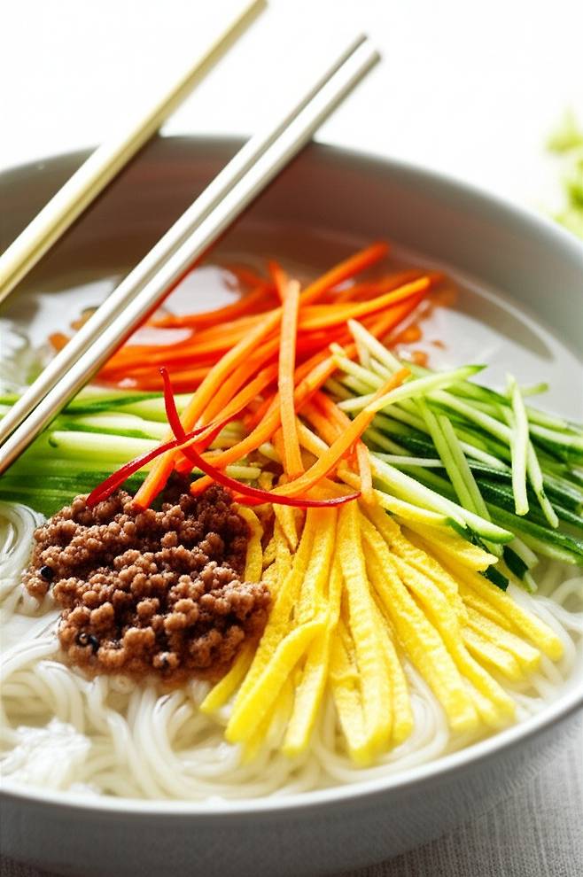 잔치국수의 면은 쫄깃하면서도 부드러운 식감이 생명입니다. 면을 삶을 때는 충분한 양의 물을 사용하고, 삶는 시간과 찬물에 헹구는 과정이 중요합니다.