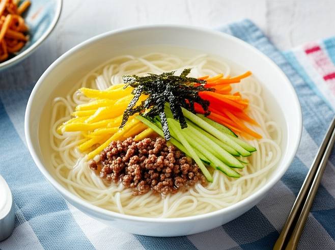이제 모든 준비가 끝났습니다. 면을 삶고, 고명을 준비하고, 양념장까지 만들었으니, 맛있게 담아내는 일만 남았습니다. 따뜻한 육수를 붓고, 면과 고명을 예쁘게 올려, 정성껏 만든 양념장을 곁들이면 완성입니다.