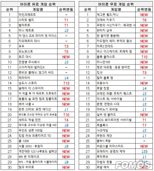 ■ 아이폰 게임 순위