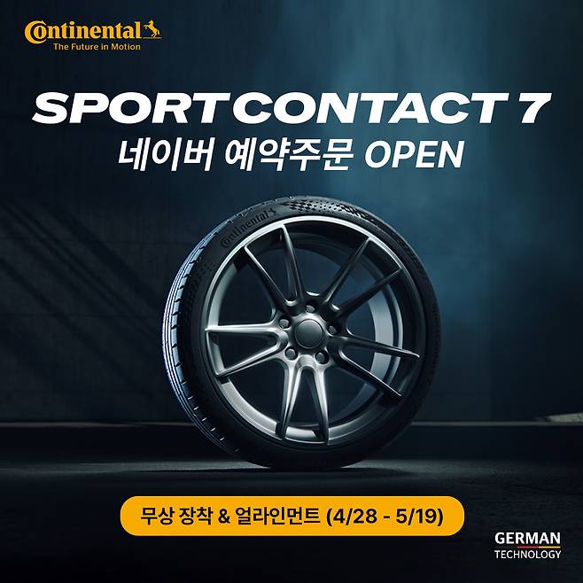 콘티넨탈이 초고성능 여름용 타이어 ‘스포츠콘택트 7’ 예약 주문 프로모션을 시작한다고 밝혔다. 오늘부터 다음달 19일까지 3주간 진행되는 이번 프로모션은 국내 고객의 높은 관심과 수요 증가에 대응하기 위해 마련됐다.