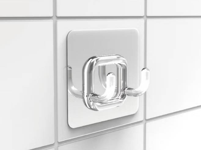 이럴 때 사용하기 좋은 물건이 바로 '접착 패드 L자형 후크'다. 접착이 간편한 이 테이프 식 후크는 벽에 못을 박거나 본드를 녹여 붙일 필요 없이 스티커만 떼어내면 손쉽게 붙일 수 있다.