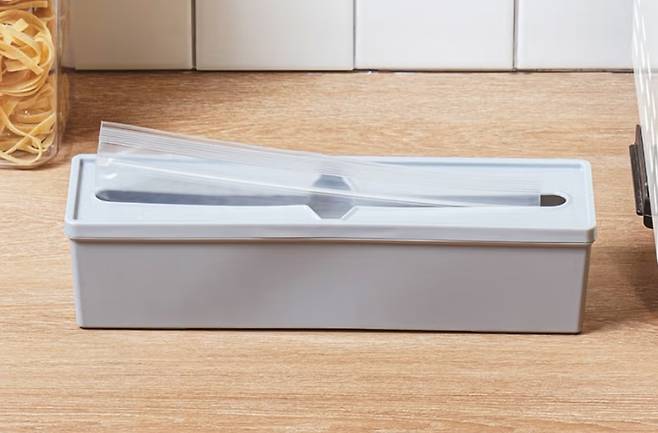 이런 생활용품의 정리를 도와줄 물건이 있다. 바로 '소품정리함'이다. 좁고 긴 수납함과 십자 모양의 홈이 나 있는 뚜껑으로 이뤄져 있는 이 물건은 빨대나 지퍼백, 비닐봉지나 위생 장갑 등의 주방용품을 보관하기에 안성맞춤이다.