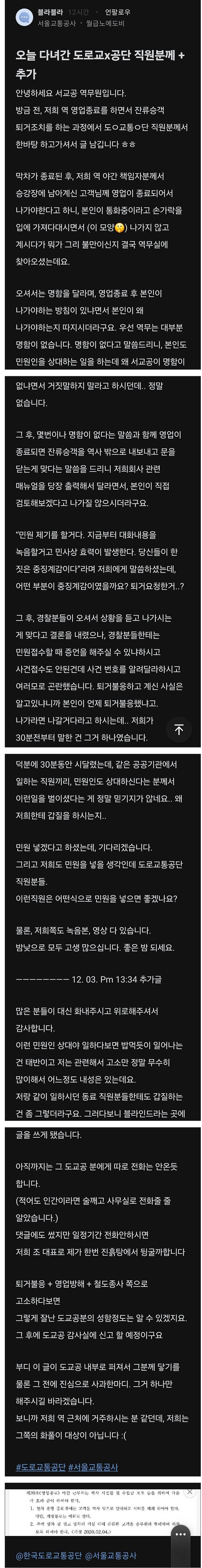 역무원에게 개진상부린 도로교통공단 직원