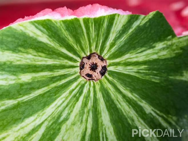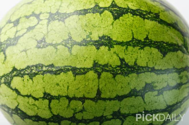 수박의 껍질 줄무늬는 햇빛을 얼마나 받았는지를 알려주는 신호다. 줄무늬가 선명하고, 초록색과 검은색의 대비가 뚜렷한 수박일수록 당도와 수분이 잘 배어 있다. 줄이 흐릿하거나 색이 바랜 수박은 햇빛을 제대로 받지 못해 맛이 덜할 수 있다. 전체적으로 색이 고르고 진하며, 윤기가 나는 수박이 속까지 맛있을 확률이 높다.