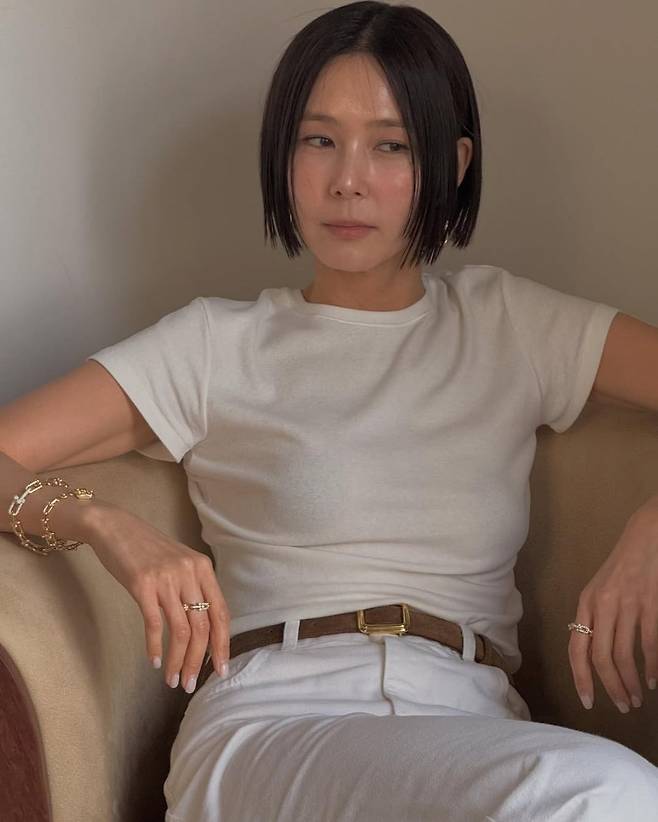 노메이크업처럼 자연스러운 메이크업과 단정한 블런트 보브 헤어는 그녀의 세련된 이미지에 완벽히 부합하며, 과하지 않은 고급스러움이란 이런 것임을 여실히 보여준다.