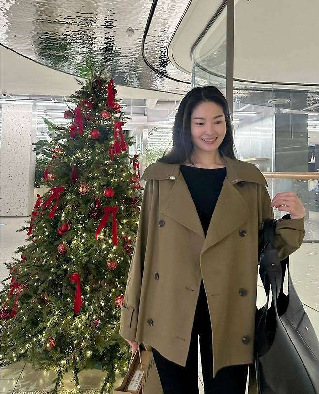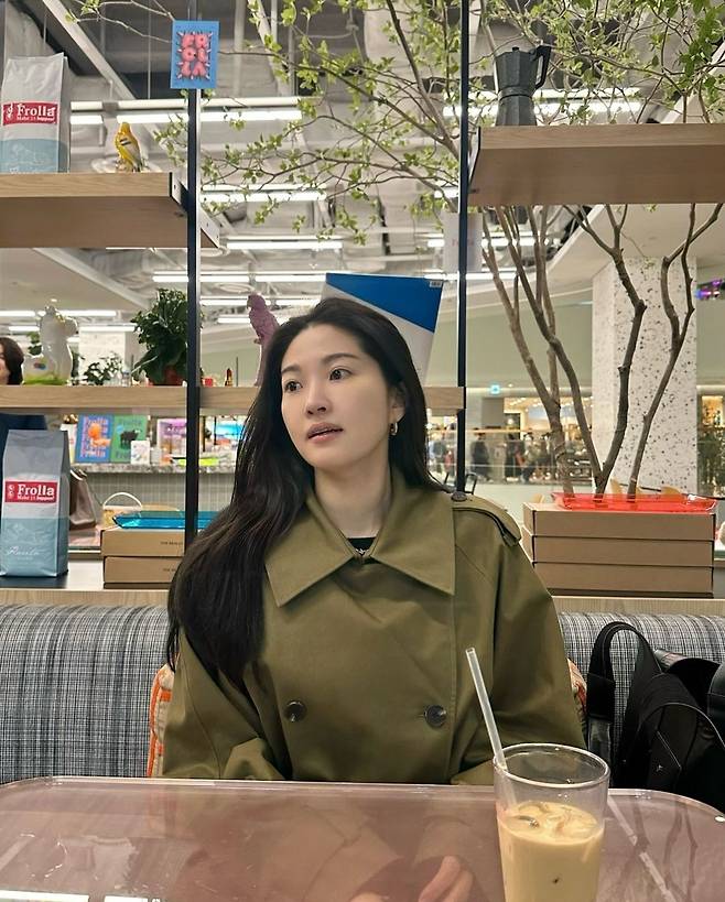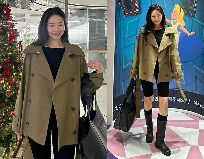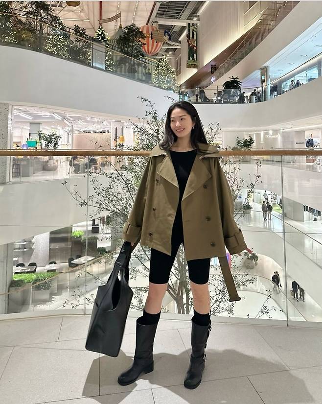 류이서는 바이커 쇼츠와 트렌치코트를 활용해 세련된 컬러 매치를 선보이며 시크하면서도 여유로운 룩을 연출했습니다.