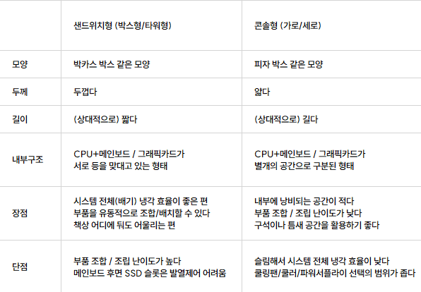 만약 그래픽카드와 CPU 장착 공간이 분리된 콘솔형 케이스를 사용한다면, 부품 간 간섭은 신경 쓸 필요가 없다. 이 경우 케이스와 부품의 장착 호환성만 체크하면 된다.