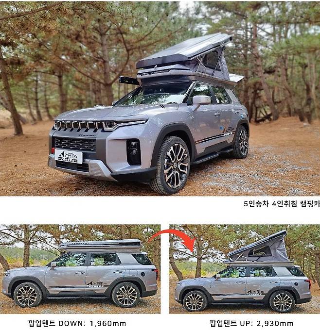 토레스 캠프는 토레스의 외관을 그대로 유지하면서 실내 레이아웃만 변경한 2인승 차박 모델과 루프 팝업 텐트를 포함해 실내와 실외를 변경한 5인승 캠퍼용으로 구성되어 있습니다. 조금 더 자세히 살펴보면 다음과 같습니다.