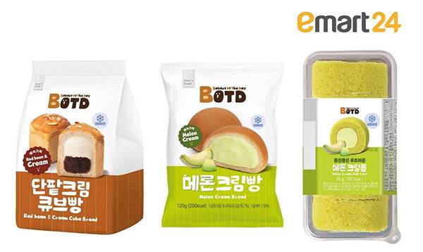 편의점 이마트24는 자체 베이커리 브랜드 BOTD를 론칭하고, 새로운 맛의 멜론빵으로 ‘메론크림빵’과 ‘메론크림롤’을 출시했다. 메론크림빵은 촉촉한 빵 안에 달콤한 메론크림이 가득한 제품이며, 메론크림롤은 멜론향이 느껴지는 시트지에 부드럽고 진한 멜론 풍미가 가득한 크림을 넣은 롤 베이커리다. 고소하고 달콤하게 즐길 수 있는 ‘단팥크림큐브빵’도 함께 출시됐다. 메론크림빵과 메론크림롤의 매장 판매가는 3,800원이다.