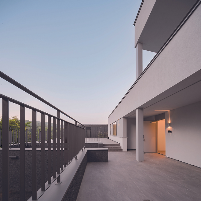 중정은 일부 곡선 형태를 가지고 있다. 이는 길어지고 단조로워질 수 있는 복도 코너 공간의 움직임을 유연하게 해준다. 중정 주변으로는 처마가 길게 이어져 외부 휴식공간이 되기도 하고, 중정 의 깊이감을 더해주기도 한다.