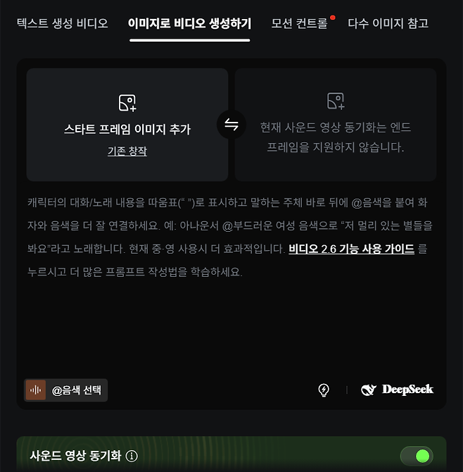 이후 상단 메뉴에서 ‘인물 이미지 추가’ 버튼을 눌러 원본 사진을 업로드합니다. 인물이나 동물 등 대상 이미지 한 장만 있어도 충분합니다. 아래쪽에는 ‘동작 비디오 추가’ 기능이 있으며, 미리 준비된 예시 동작을 선택하거나, 직접 업로드한 동작 영상을 기반으로 생성할 수도 있습니다.