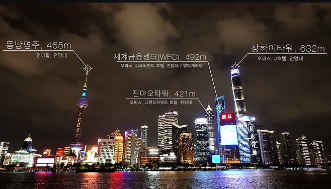 이곳에서 황푸강을 사이에 두고 보이는 루자쭈이 금융무역지구의 야경을 즐겨보자.