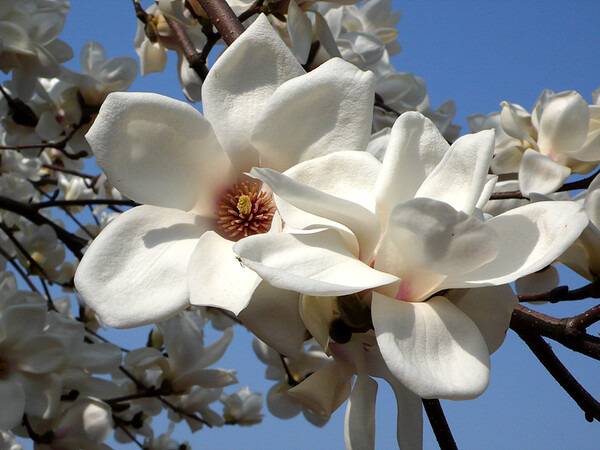 도도하게 하늘을 향해 피어나는 그 자태는 우아하고 청아하다. 정원의 골격을 이루는 교목으로 손색이 없으며 봄날 눈부시게 아름답다.
