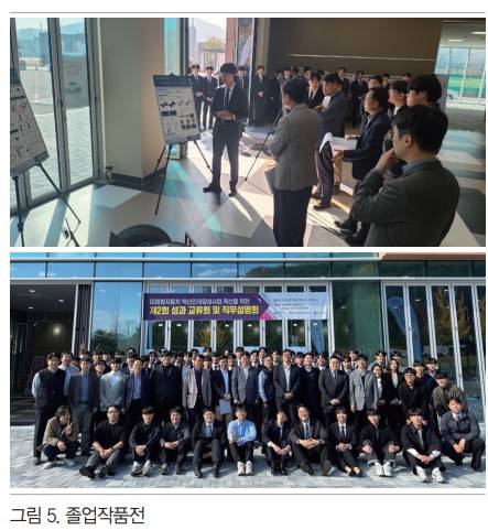 학생들의 문제해결 능력 및 연구능력 향상을 위하여 컨소시엄 기업에서 제시하는 애로기술을 지도교수의 지도하에 참여학생이 해결하는 과정으로 산학프로젝트를 진행하였다. 2년간 23개의 주제에 대하여 학부생 85명이 참여하였다. 우수한 성과를 확산하기 위하여 전체 참여학생과 참여기업이 참여한 성과발표회를 진행하였고, 한국자동차공학회 추계학술대회에 6개의 포스터 논문을 제출하고 발표하였다. 서한이노빌리티에서 제안한 내경 측정장치 개발 산학프로젝트는 기술이전과 특허출원도 진행하여 기업이 필요한 우수한 성과가 도출된 것을 알 수 있다.