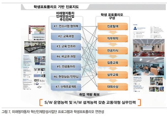 한국교통대학교는 2년간의 사업 운영을 통해 미래형자동차 분야 융합전공 개설, 산업 맞춤형 교육과정 개편, 산학협력 확대, 단기전문교육과정 운영, 전공동아리 지원 등을 통하여 인재양성에 대한 성과를 거두며 성공적인 교육 모델을 구축하였다. 자동차공학 분야는 기계공학을 기반으로 하지만 최근 미래형자동차 분야는 전자, 전기, 컴퓨터, 소재 등 다양한 분야의 기술이 결합되기 때문에 대학의 기존 학과에서 이와 관련된 모든 교육과정을 운영하고 학생을 교육하기에는 어려운 현실이다. 따라서 융합전공 제도를 활용하여 여러 학과가 협력하여 교육하는 것이 현실적인 대안이다.