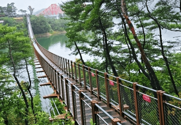 출렁다리 주변에는 등산로와 산책길도 잘 조성되어 있어 다리만 둘러보는 것이 아니라 여유 있게 자연을 함께 즐길 수 있는데요. 가족 단위 방문객뿐 아니라 커플, 친구들과의 나들이 장소로도 인기가 높습니다. 한여름 속 짧은 모험을 원한다면 꼭 들러볼 만한 곳입니다.