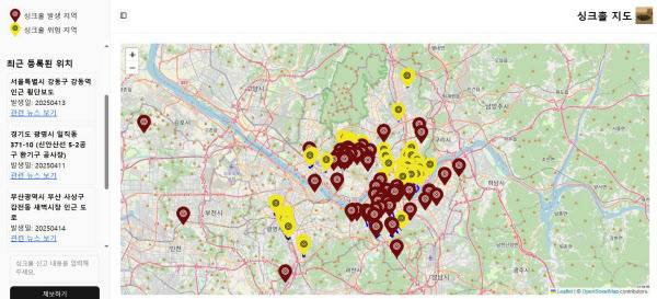 이와 비슷한 시기에 웹 개발자 A씨는 자발적으로 또 다른 싱크홀 지도를 만들었다. A씨는 서울시가 지반침하 안전지도를 공개하지 않겠다는 방침을 접하고 제작을 결심했다. 그는 최근 10년간 싱크홀이 발생한 지역을 취합해 지도로 완성했다. 이달 4일부터 서비스를 시작한 그의 웹페이지는 입소문을 타고 출시 일주일 만에 1000명 이상이 접속했다.