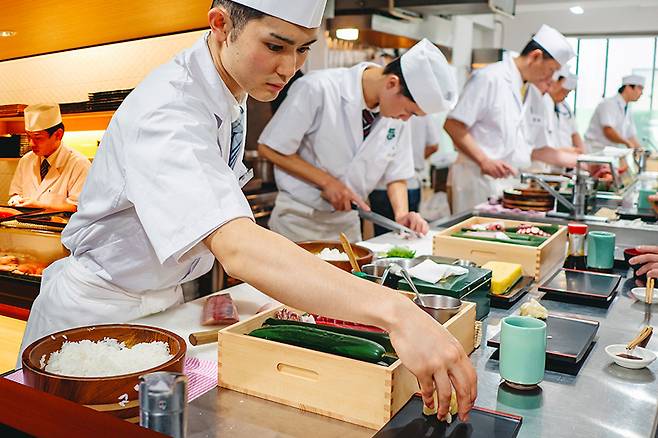 스시 요리사의 대부분은 남성입니다. 이는 오랜 전통과 관습이 작용한 결과인데요. 특히 스시를 만드는 손이 차가워야 한다는 믿음과 함께, 여성의 손은 남성보다 따뜻하기 때문에 스시를 만들기에 적합하지 않다는 낡은 고정관념이 여전히 존재합니다.