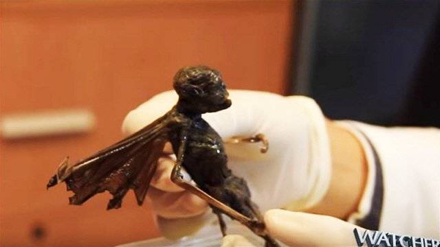 손바닥만한 크기의 미라와 그 미라에게 달린 날개까지 아무리 살펴봐도 사람처럼 보이지 않는 유골이 있었죠.