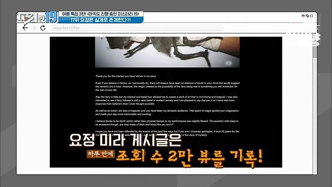충격을 받은 댄이 이 사진을 자신의 웹사이트에 올리자, 요정 미라 게시글은 하루만에 조회수 2만뷰를 기록했습니다.