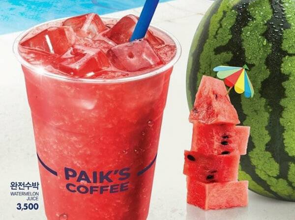 커피전문점 브랜드 빽다방은 제철 맞은 국내산 수박을 활용한 여름 시즌 음료 3종을 출시했다. 이번에 선보이는 음료는 젤리 좋은 수박 스무디, 수박 꿀 스무디, 완전수박 등이다. 특별히 품질 좋은 국내산 수박만을 아낌없이 활용해 뛰어난 맛뿐만 아니라 우리 농산물의 소비 촉진으로 국내 수박 농가에도 도움이 될 것으로 예상된다. 완전수박 주스의 매장 판매가는 3,500원이다.