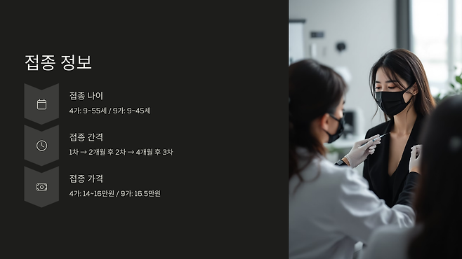 총 3회 접종 비용을 고려하면 적지 않은 금액이므로, 접종 전 병원에 문의하여 정확한 가격을 확인하는 것이 좋습니다.