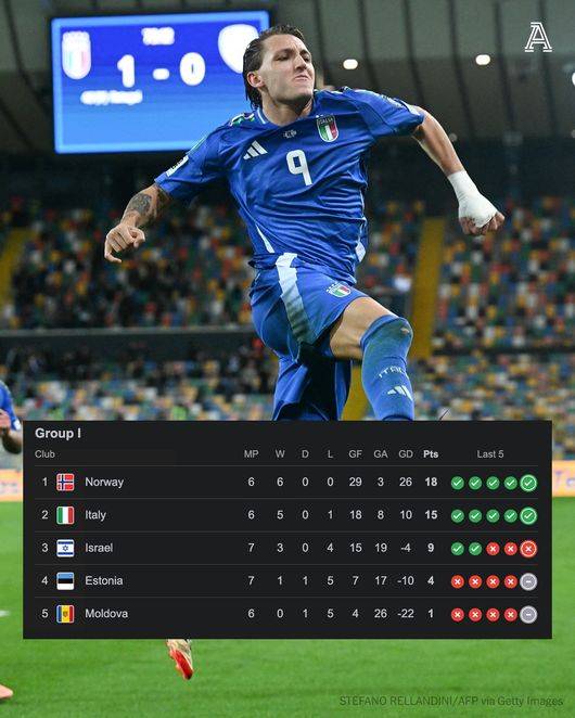 이대로 유럽 예선 플레이오프행이 유력한 이탈리아다. 월드컵 본선에 직행하려면 남은 두 경기에서 노르웨이와 격차를 뒤집는 수밖에 없다. 문제는 엘링 홀란을 앞세운 노르웨이가 골득실 +26으로 이탈리아(+10)를 압도하고 있다는 점. 이탈리아가 홈에서 노르웨이를 잡아내더라도 노르웨이가 에스토니아를 상대로 미끄러지지만 않는다면 사실상 따라잡기란 불가능하다.