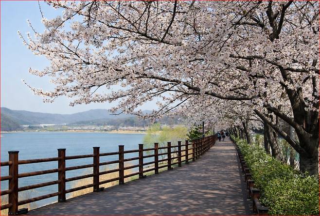 특징: 수면 벚꽃 풍경, 데크길, 숲길, 야간 조명 벚꽃이 어우러진 산책 코스입니다.