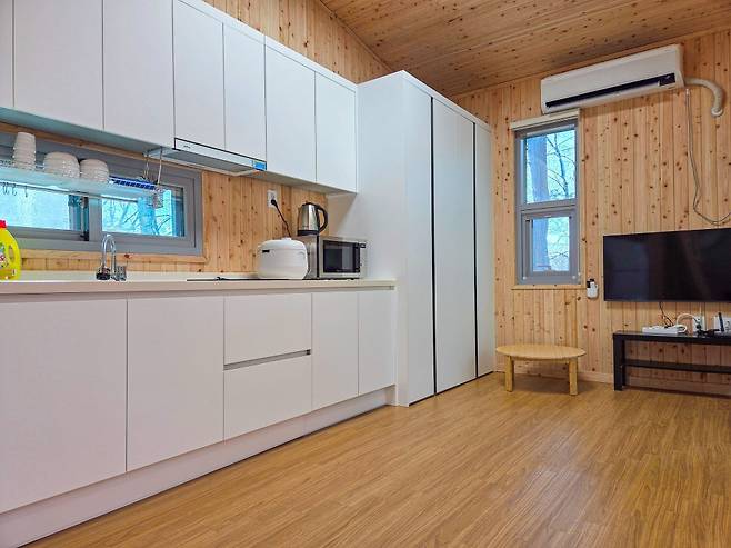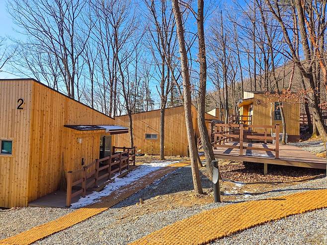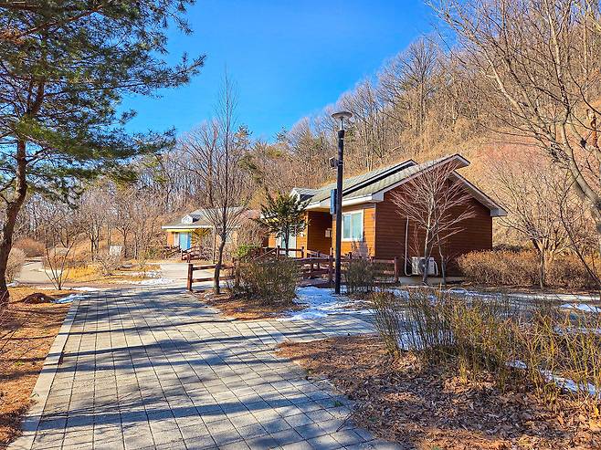 낙엽이 떨어진 숲길 사이로 시야가 트여 산세가 드러나고, 계곡 가장자리에는 얼음 물줄기가 남아 또 다른 풍경을 만듭니다. 이 고요한 숲에 더해, 3월부터는 핀란드식 목조 구조로 지은 ‘숲속의 집’이 정식 오픈을 앞두고 있어 숙박 선택지도 넓어집니다.