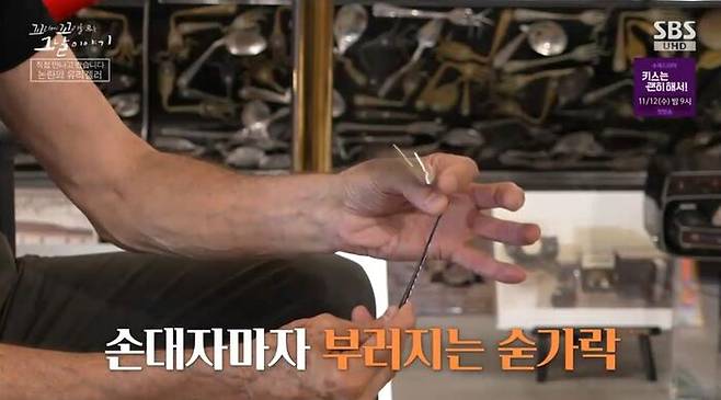 지금 '꼬꼬무' 앞에서 다시 스푼벤딩을 하겠다는 유리겔러. 그가 손을 대자마자 숟가락이 부러졌어.