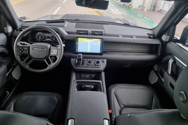 가속페달을 지긋이 누르며 출발하는 순간 운전자를 '주인님'으로 모시기 시작한다. 주인님의 심기 보좌에 심혈을 기울여 거침없는 가속감을 자랑한다. 급출발하면서도 디펜더 앞코가 훌쩍 들뜨는 일이 없다. 브레이크에 발을 갑작스레 얹어도 전방으로 콧방아 찧는 기분이 들지 않는다. 최대한 수평을 유지하는 게 디펜더의 최대 장점이다.
