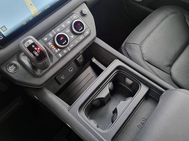 그래도 이 정도면 광활한 풀플랫 공간이 마음에 쏙 들었다. 신장 180cm 캠핑족도 편안히 누울 수 있는 바닥면이 펼쳐진다. 디펜더 130 아웃바운드를 선택해야 할 이유가 분명히 드러나는 순간이다. 다만 살짝 아쉬운 점은 2열시트를 접기 위한 전동 버튼이 없고 리클라이닝 손잡이를 당겨 시트를 접어야 한다.
