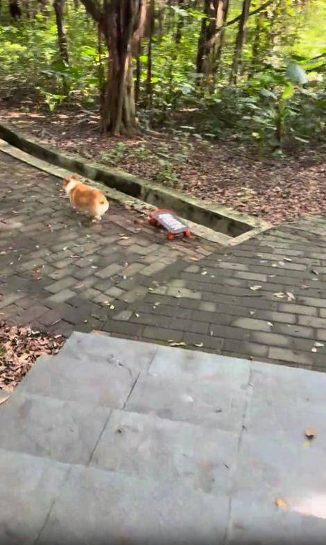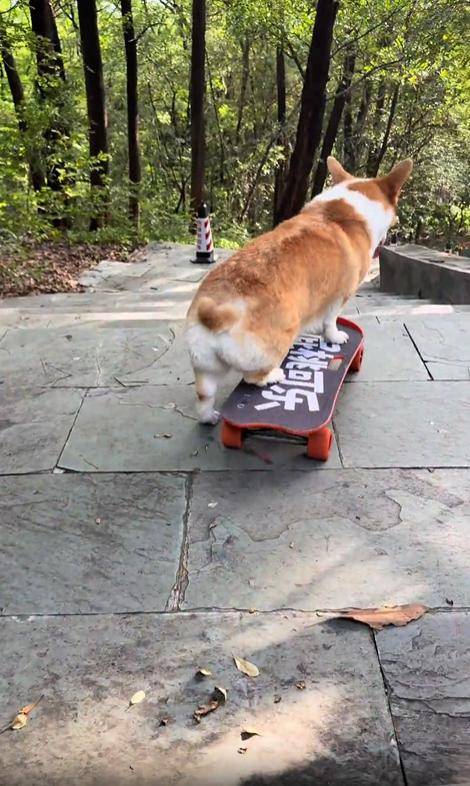 영상이 끝나갈 무렵, 보드가 마지막 계단을 조심스레 통과하고, 넓은 흙길에 안착하자 코기의 표정이 살짝 바뀝니다. 조금의 뿌듯함, 그리고 “이 정도쯤은 식은 죽 먹기지”라는 듯한 의기양양함이 얼굴에 떠오릅니다.