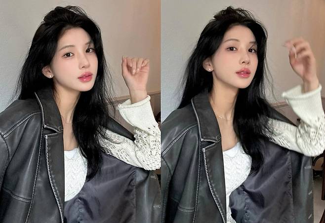 화이트 컬러의 니트는 섬세한 짜임이 돋보여 여성스러운 분위기를 더했으며, 레더 재킷은 무심하게 걸친 듯한 스타일링으로 도회적인 시크함을 보여줬습니다.