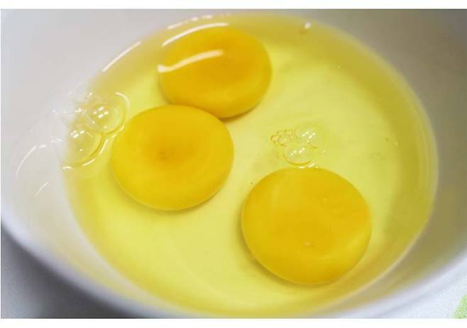 계란 3개를 볼에 넣고 덩어리 없이 곱게 풀어주세요.(거품은 최소화하는 것이 부드러운 식감을 만듭니다.)