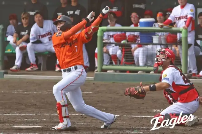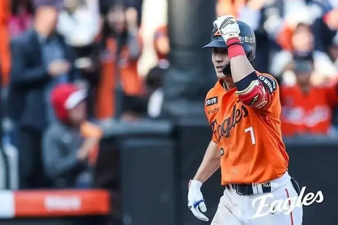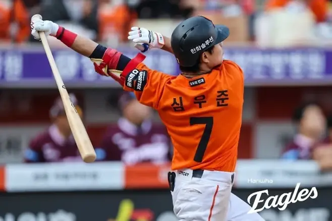 8회말 4-7, 패색이 짙던 순간 동점 3점 홈런. 좌측 폴대를 맞고 떨어지는 타구를 확인한 뒤 대전 한화생명볼파크가 포효했습니다.