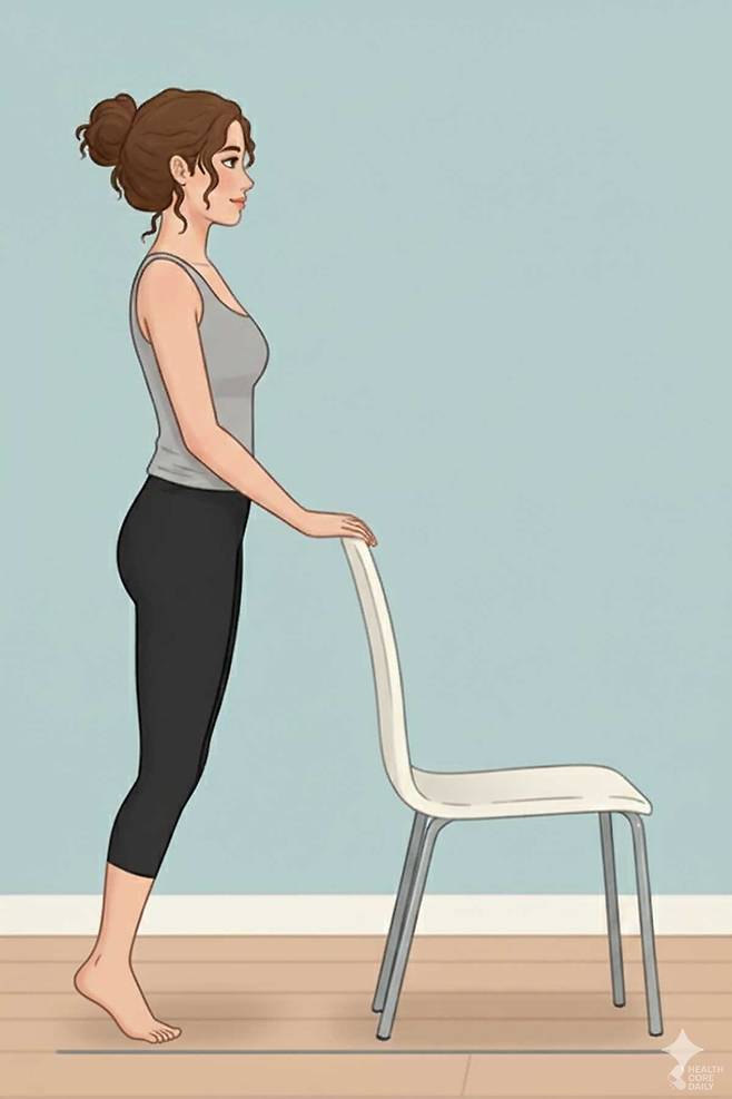 발뒤꿈치 들기 운동은 단순해 보이지만 올바른 자세를 지켜야 한다. 먼저 서서하는 방법은 종아리 뒤쪽 두툼한 근육인 비복근을 강화하는 데 도움을 준다. 발을 어깨 넓이로 벌리고 허리를 곧게 펴고 가슴을 열어야 한다. 턱은 살짝 당기고 균형을 위해 벽이나 의자를 가볍게 잡는다. 발뒤꿈치를 천천히 들어 올린 뒤 1초 정도 유지하고 종아리에 힘을 준다. 이후 천천히 내려오면 된다. 강도를 높이고 싶다면 계단 끝에 발 앞꿈치만 걸치고 하거나 아령을 들고 추가 자극을 줄 수도 있다.