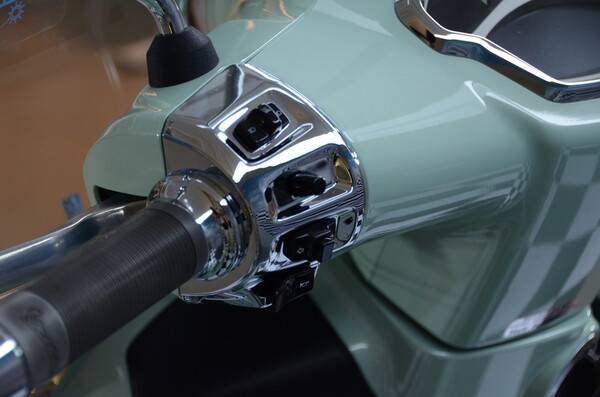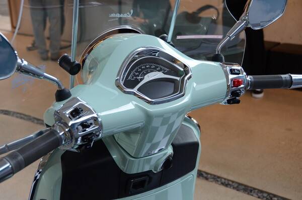 사진에는 바늘을 사용하는 계기판만 있는데, 이제는 풀 디지털 방식의 계기판도 제공된다. 핸들바 왼쪽에 있는 조이스틱으로 기능을 조작하고 선택한다. 베스파 '미아(mia)'라는 앱을 통해 스쿠터의 상태를 확인하고 모든 것을 기록할 수도 있다. 자동차와 마찬가지로 이제 모터사이클도 커넥티드 시대로 진입하고 있다.