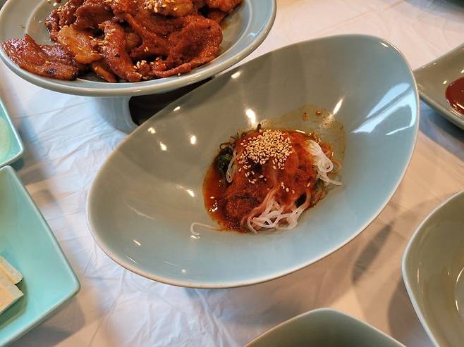 연탄불고기 백반은 2인부터 시작하니, 혼밥 불가한 곳. 상차림 인원에 따라 조금씩 싸진다.