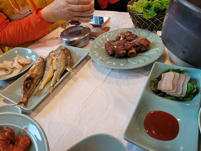 1인 1조기. 다들 공기밥 위에 척 얹어서 살살 살 발라가며 먹었다. 살도 실하고 간도 적당하니 이거 한마리로도 밥 한공기 뚝딱 가능할듯 하다.